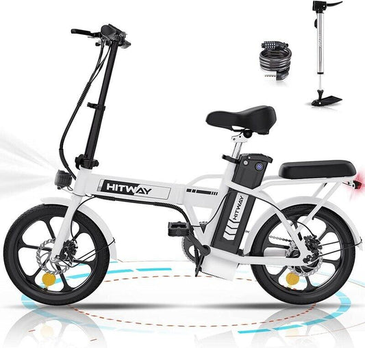 Hitway BK5S 2025 Version 250W 16" Foldable Electric Bike 36V 10.4Ah Battery Long Range Commuter E-Bike