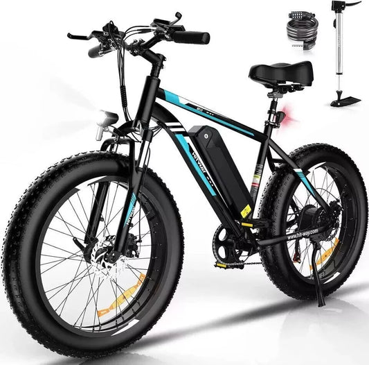 Hitway BK9 2025 Version 250W 26" Fat Tire Electric Mountain Bike 48V 15Ah Battery Off-Road Trail Ready