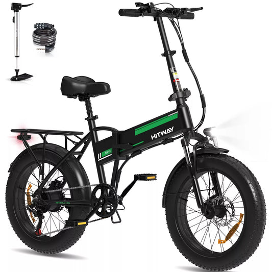 Hitway BK36 2025 Version 250W 20" Fat Tire Foldable Electric Bike 48V 10.4Ah Battery All-Terrain City Explorer