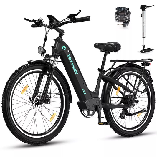 Hitway BK16 2025 Version 250W 26" Fat Tire City Cruiser E-Bike 48V 18Ah Battery Step-Through Comfort Ride